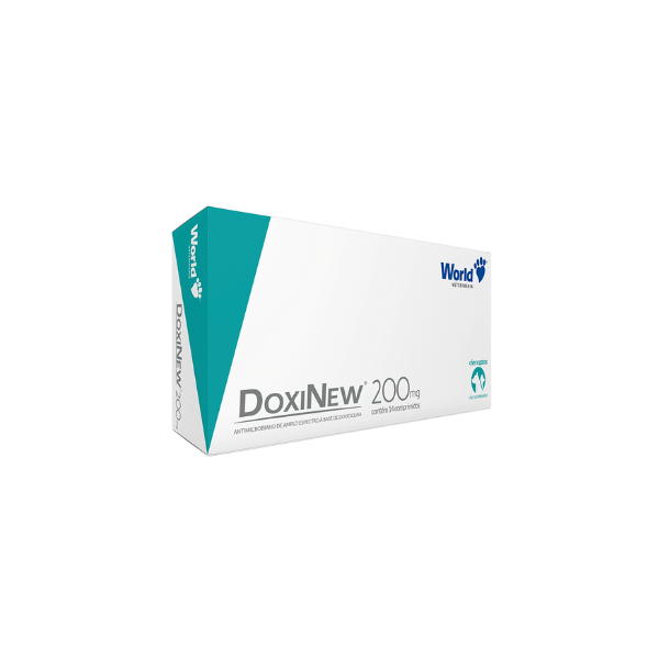 Doxinew 200mg é um antimicrobiano a base de Doxiciclina  de amplo espectro de ação, contra bactérias GRAM + e GRAM -. Produto de uso oral, palatável, indicado para cães com peso de 40Kg e gatos , utilizado no tratamento das infestações por Ehrlichia canis e Rickettsia rickettssii, gastrointestinais, geniturinário, pododermatite, otites e leptospirose.
