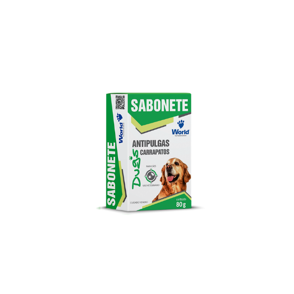 MODO DE USAR: Uso tópico. Após molhar o animal passar o sabonete em quantidade suficiente. Com auxílio de uma escova, esfregar bem, deixando a espuma agir por 5 minutos antes de enxaguar e secar o animal. APRESENTAÇÃO: Barra de 80g condicionadas em cartuchos de papelão. CAIXA DE EMBARQUE: 24 cartuchos.